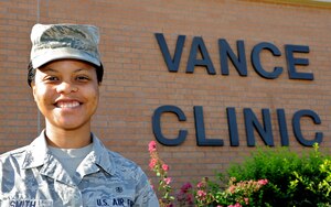 Senior Airman Shakon Smith, the element leader of outpatient records for the 71st Medical Support Squadron, received the 71st Flying Training Wing Airman of the Month award for August."I was nervous at first because (the command chief) was on the board," said Smith, from Cordele, Ga. "I just took a