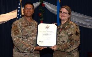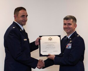 Lt. Col. Kenyatta Ruffin, the past 71st Operations Support Squadron commander, helped honor his childhood role model, retired Brig. Gen. Charles E. McGee, one of the original Tuskegee Airmen, Tuesday, June 29. Ruffin was a speaker at the ceremony renaming the aviation terminal at the Charles B.