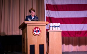 The newly minted pilots of Undergraduate Pilot Training Class 21-08 AU pinned on their wings May 7 at Vance Air Force Base, Oklahoma, with a special guest. Gen. Jacqueline Van Ovost, the Defense Department’s only female four-star general and leader of Air Mobility Command, spoke about the impact of