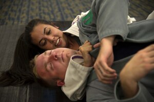 “Jiu-Jitsu allows Airmen to explore problem solving in a controlled environment,” said Master Sgt. Tony Eclavea. “We simulate hardships by putting Airmen in difficult situations and give them the tools in the form of technique to come up with systematic ways to solve problems. The feeling of