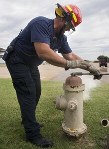 June 28, 2017 Firefighters conduct annual base hydrants flow test Base firefighters tested fire hydrants here June 20 through 24 to make sure the hydrants were in working order.